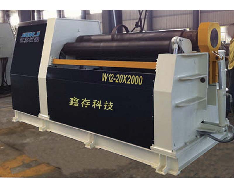 性能與特點: 該機結構型式四輥式,上輥繼主傳動,通過減速機的輸出齒輪與上輥齒輪嚙合,為卷制板材提供扭矩;下輥作垂直升降運動,通過液壓缸內的液壓油作用于活塞而獲得,以便夾緊板材,為液壓傳動;在下輥的兩側設有側輥并沿著機架導軌作傾運動,該機優點是板材端部預彎及卷圓可以在同一臺設備上進行。